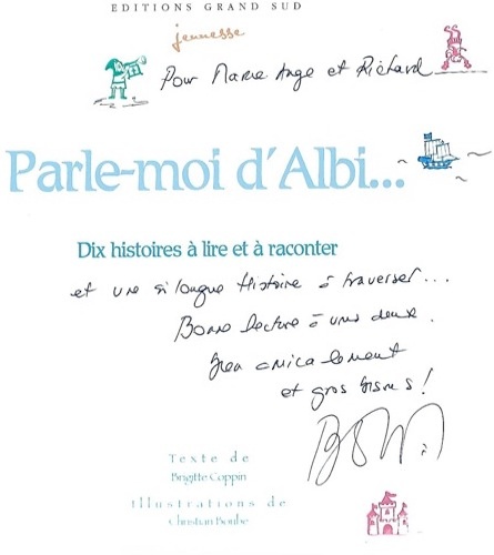 Échanger, écouter, raconter, embrasser un papy et son petit-fils fans de châteaux forts, découvrir une famille ayant vogué dans le sillage de Magellan, offrir ma plus belle dédicace à l’enfant qui achète son premier livre, retrouver mes amis auteurs, illustrateurs et admirer leurs talents réunis, partager l’ambiance avec les organisateurs, trinquer tous ensemble et se dire à bientôt…